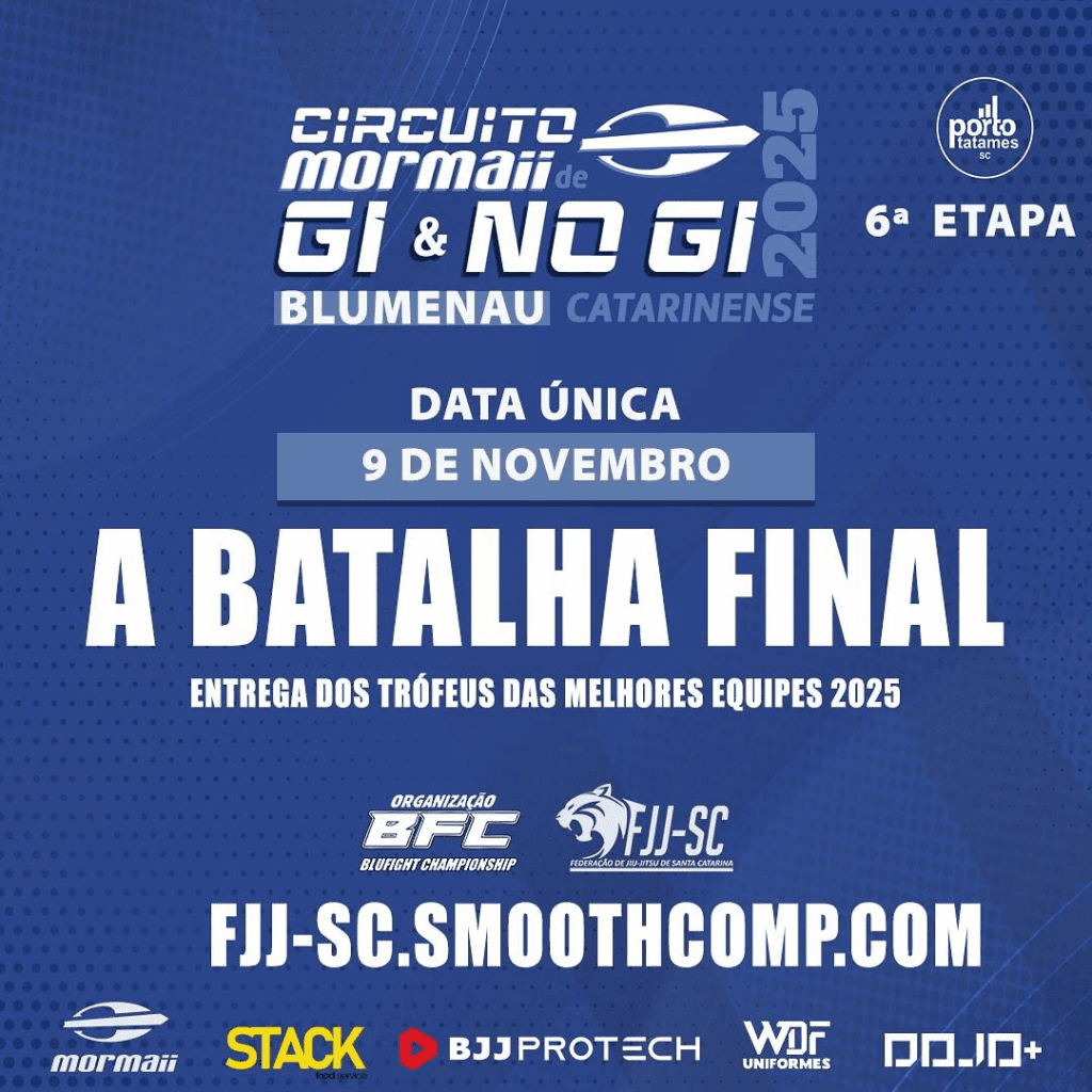 O Jiu-Jitsu catarinense se prepara para viver um momento histórico! A grande final do Circuito Mormaii de Jiu-Jitsu Catarinense – Temporada 2025, promete encerrar o ano em alto estilo, com uma estrutura de arena inédita, reunindo os melhores atletas e equipes do estado.